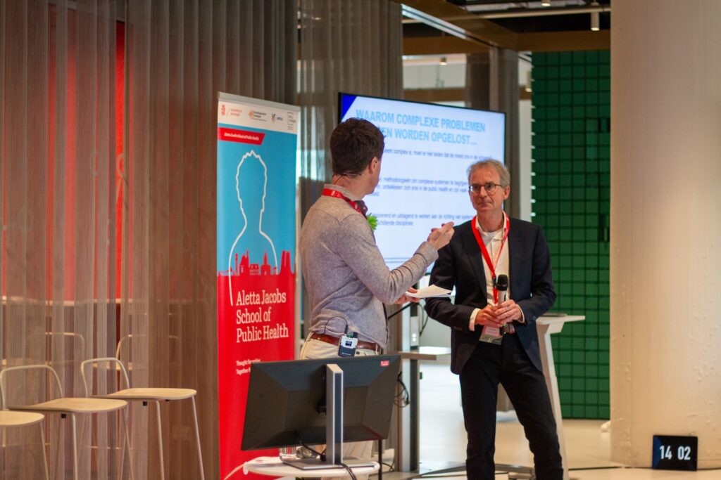 Er werd niet alleen teruggeblikt, maar ook gekeken naar hoe we de leefomgeving nu en in de toekomst kunnen verbeteren. Frank van Lenthe, hoogleraar sociale epidemiologie bij het Erasmus MC Rotterdam, legde hierbij de nadruk op systeemdenken. ‘Je focussen op kleine delen is makkelijk, maar heeft weinig impact. Je moet je focussen op het geheel en hoe alle factoren samenhangen, dan maak je grote impact. Het geheel is immers meer dan de som der delen.’