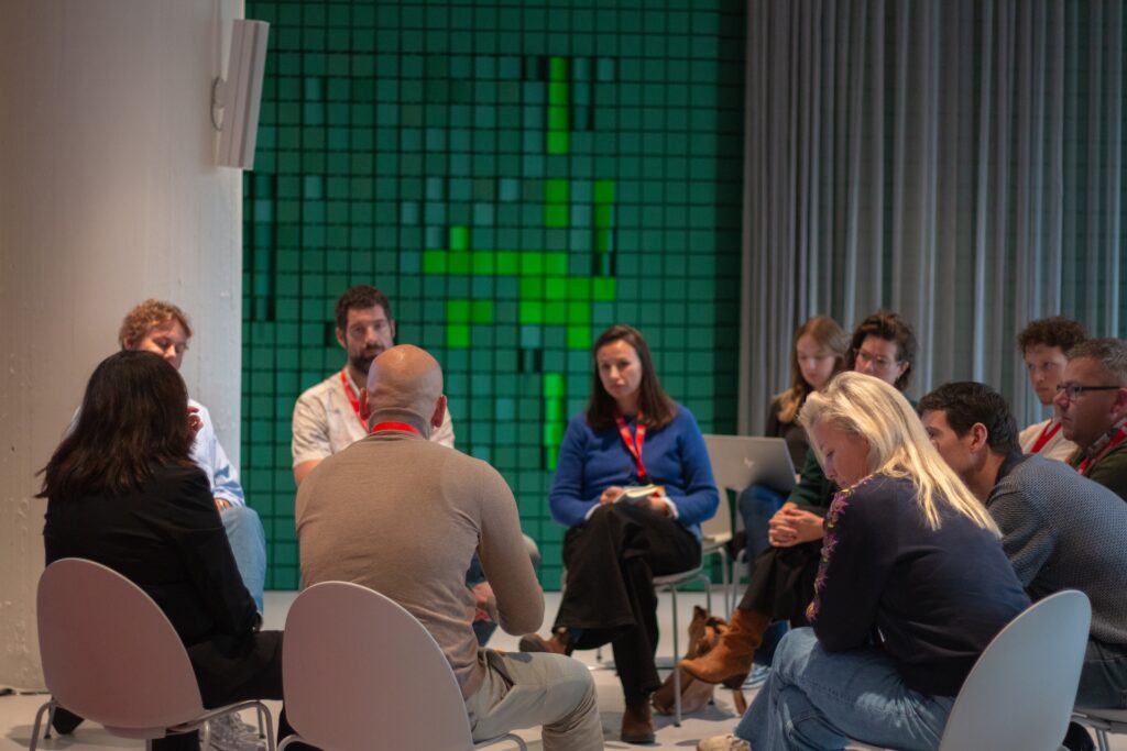 Na de enerverende workshops, was het tijd voor een paneldiscussie die op energieke wijze door dagvoorzitter Jetse Goris werd geleid. De panelleden gingen in gesprek over de inrichting van een gezondere leefomgeving en hoe je die kan creëren met de hulp van bewoners en beleid. ‘Wees nieuwsgierig naar inwoners en wat er speelt in de leefomgeving’, gaf panellid Kirsten van Spronsen aan. Daar hoort ook het communiceren op een passende manier bij, dus soms gewoon via WhatsApp in plaats van een formele uitnodiging op het gemeentehuis.