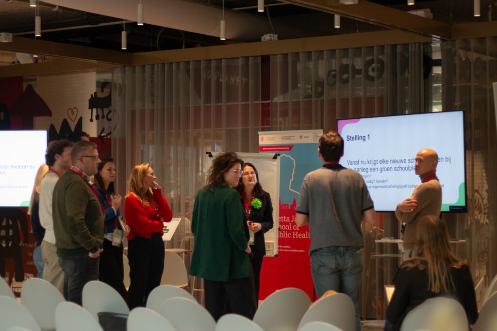 Om meer te leren over specifieke elementen van een gezonde leefomgeving waren er acht verschillende hands-on workshops. Hierbij werden er inzichten gedeeld en was er volop ruimte om met elkaar in gesprek te gaan over nieuwe ideeën voor oplossingen. Zo ging het bij de rookvrije omgeving workshop over het aansluiten bij de leefwereld van jongeren. Bij de workshop over voedselomgeving over de lastige keuzes van het kantineaanbod op scholen. Vanuit de diverse achtergronden van het publiek kwamen verschillende factoren en ideeën naar boven, wat nogmaals het belang van samenwerken bij deze complexe vraagstukken benadrukte.