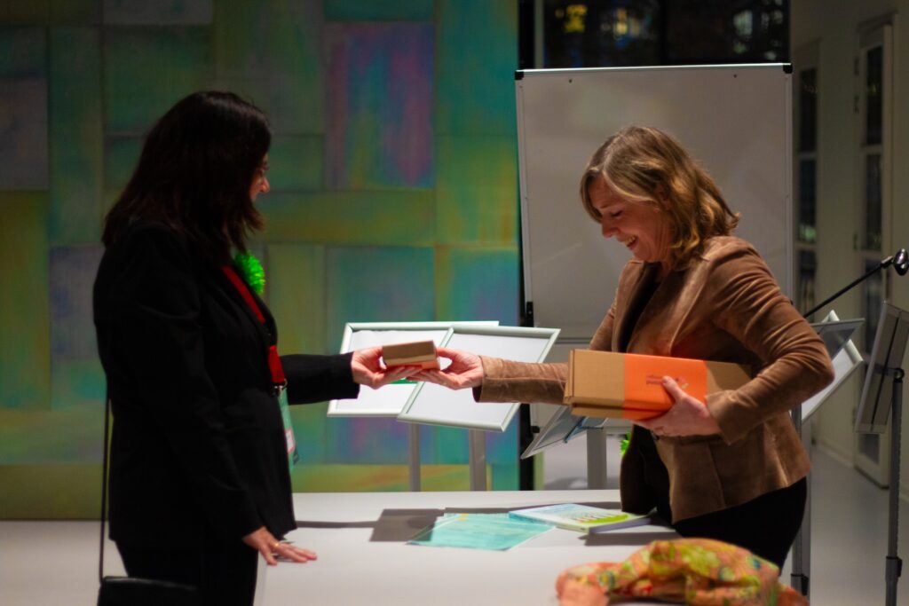 Projectleider Daphne Wiebing introduceerde het door ZonMw gefinancierde LEGrO-project, waarin veel werelden bij elkaar zijn gebracht, wat heeft geleid tot ruimte voor gesprek, verbinding, experimenteren en samen leren. Een greep uit de praktische uitkomsten van de afgelopen vier jaar werd vervolgens aan het publiek gepresenteerd. Zo liet Nynke Smidt, universitair hoofddocent Epidemiologie bij het UMCG, de uitkomsten betreffende onze voedselomgeving zien. Van world cafés en whitepapers, tot een meetinstrument om de voedselomgevingscore te bepalen en een whitepaper met daarin aandacht hoe het recht onze voedselomgeving kan sturen.